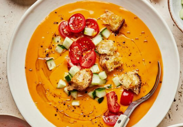 6단계: 서빙 및 맛보기 - 여름의 맛 드디어 여러분이 기다려오던 순간, 직접 만든 가스파초를 서빙하고 맛볼 시간입니다. 식힌 수프를 그릇에 담아 각 서빙이 색상과 맛을 축하하도록 하세요. 잠시 시간을 내어 그릇에서 풍기는 향기, 신선한 재료의 증거, 요리 솜씨를 감상해 보세요. 가스파초를 맛보면서 시원함을 미각으로 씻어내고 여름 풍미의 교향곡을 즐겨보세요. 이 맛있는 요리를 사랑하는 사람들과 공유하고, 계절의 본질을 담아낸 요리의 걸작을 만드는 만족감을 느껴보세요.